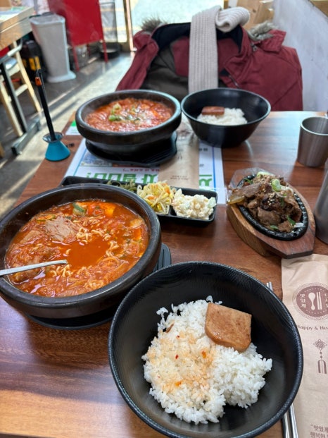 2시 수업을 위해 김치찌개 백반으로 다시 힘을 모으고 우리 귀여운 홍련이, 강림이 사진 투척 ㅋㅋ